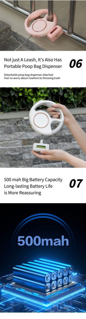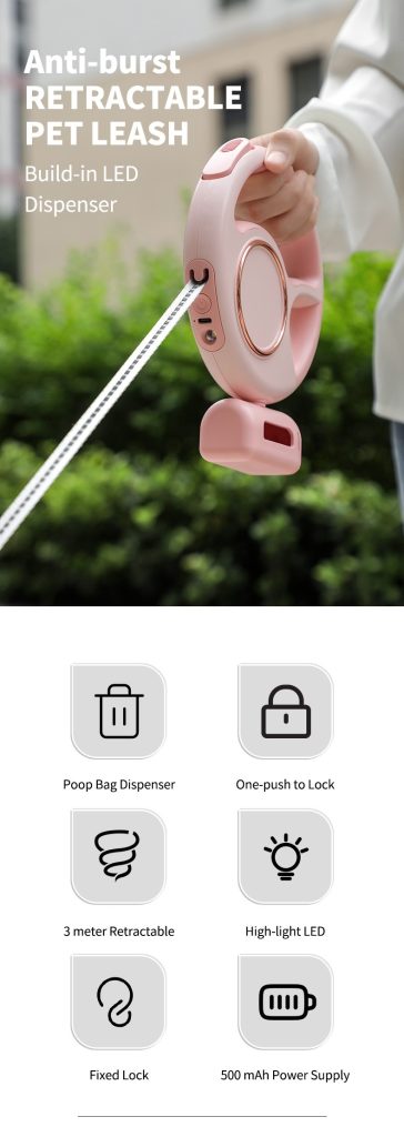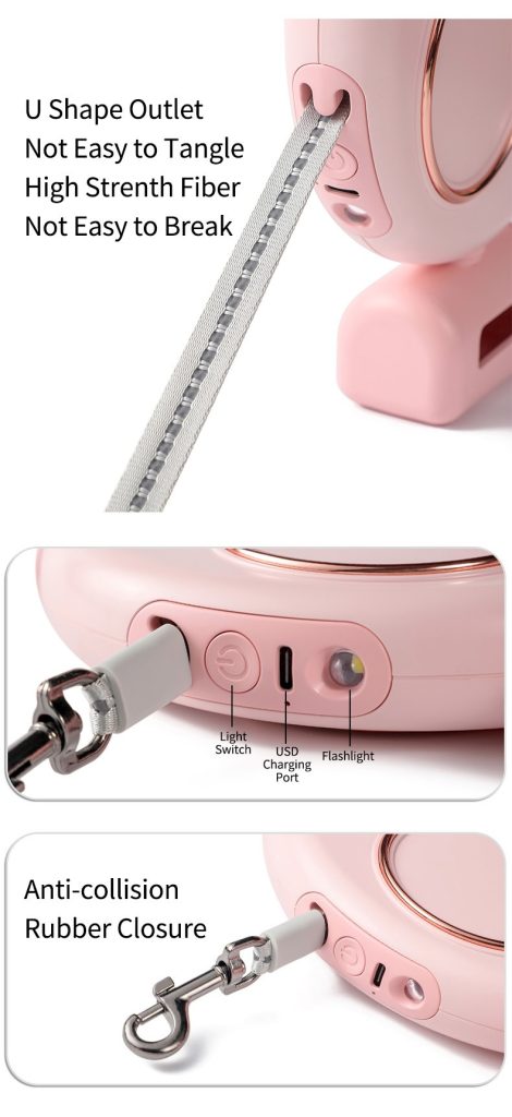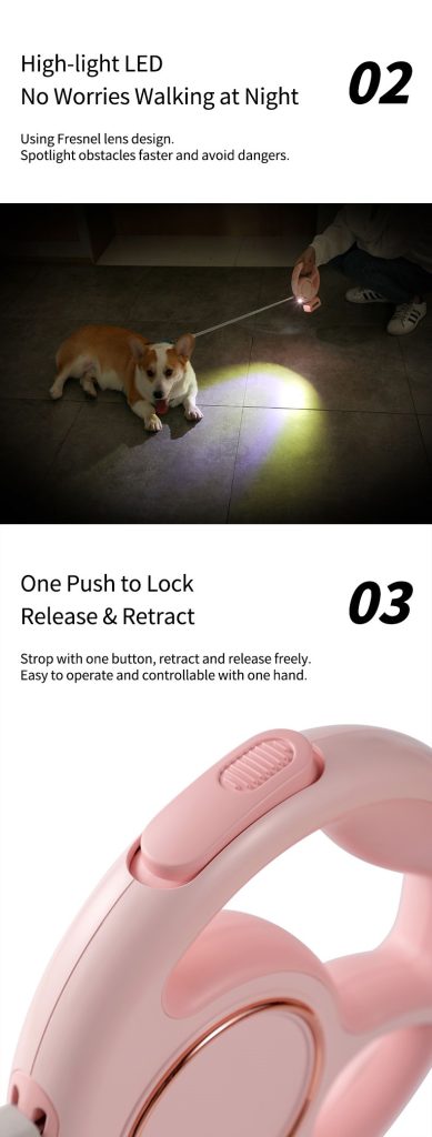 Multifunctional Heavy-Duty Retractable Dog Leash LED Lights One-Handed Brake Nylon Tape Poop Bag Dispenser luxury dog leash